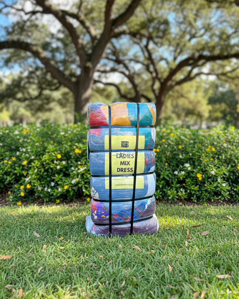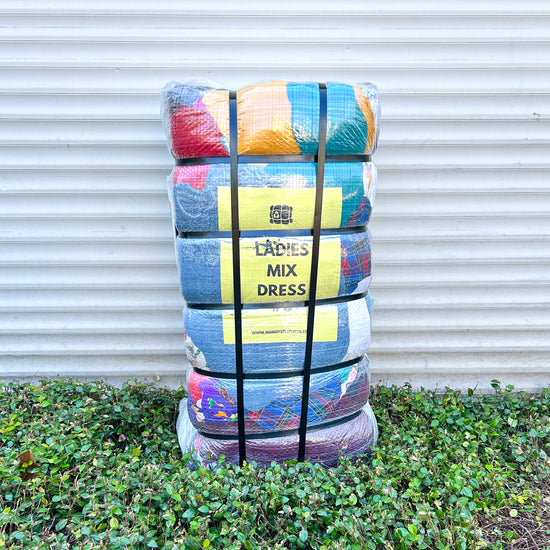 Affordable bale with assorted dresses for ladies in different styles, fabrics and sizes.