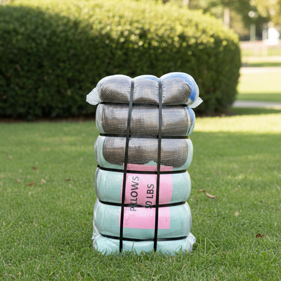 Paca de 100 lbs con almohadas de diferentes estilos y tamaños, perfectas para uso doméstico o reventa.