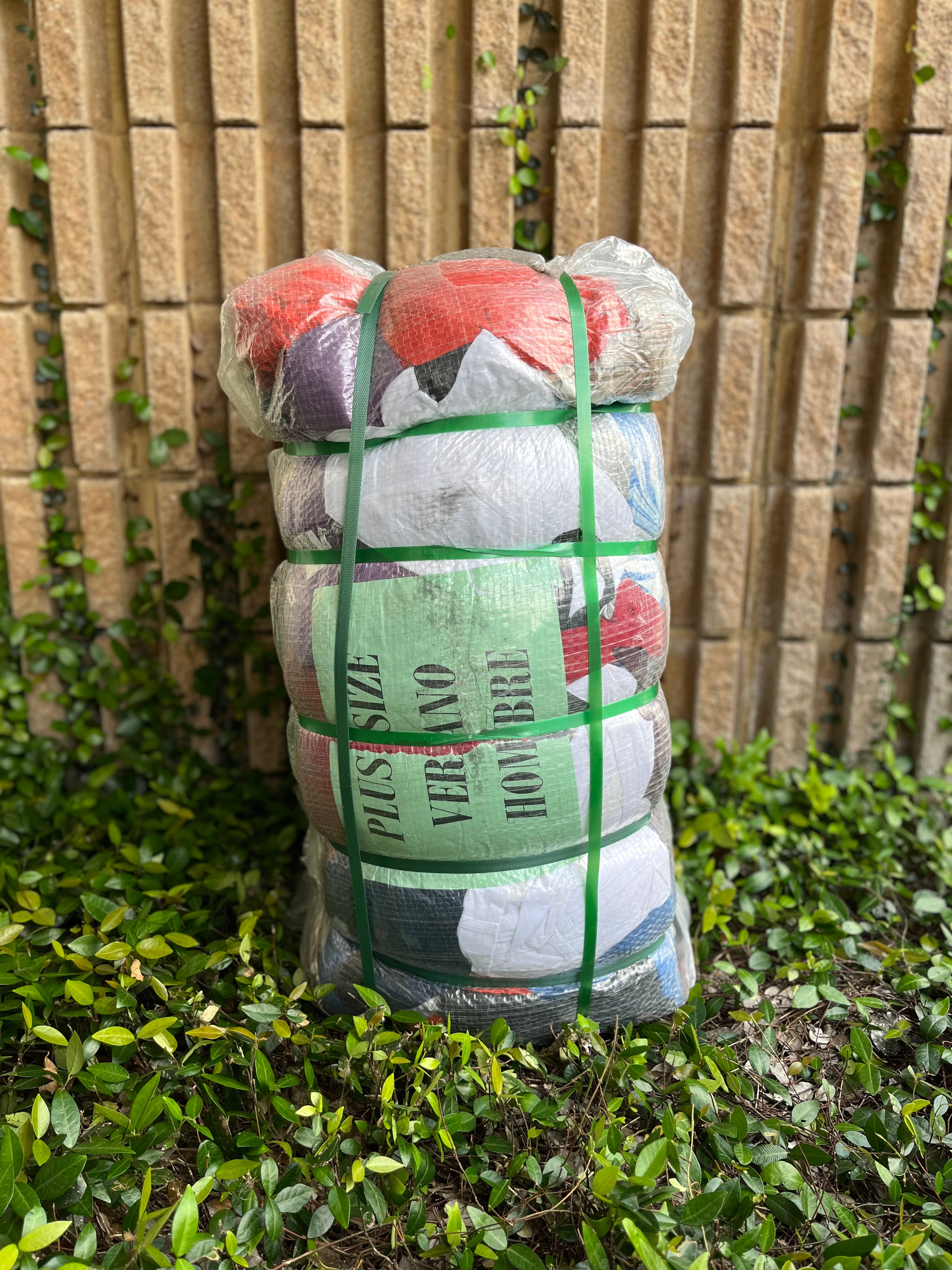 Paca de 100 lbs con ropa de hombre en tallas grandes (plus size). Calidad #1, ideal para la temporada de verano, con prendas frescas, cómodas y modernas. Perfecta para reventa o surtido masculino de alta demanda.