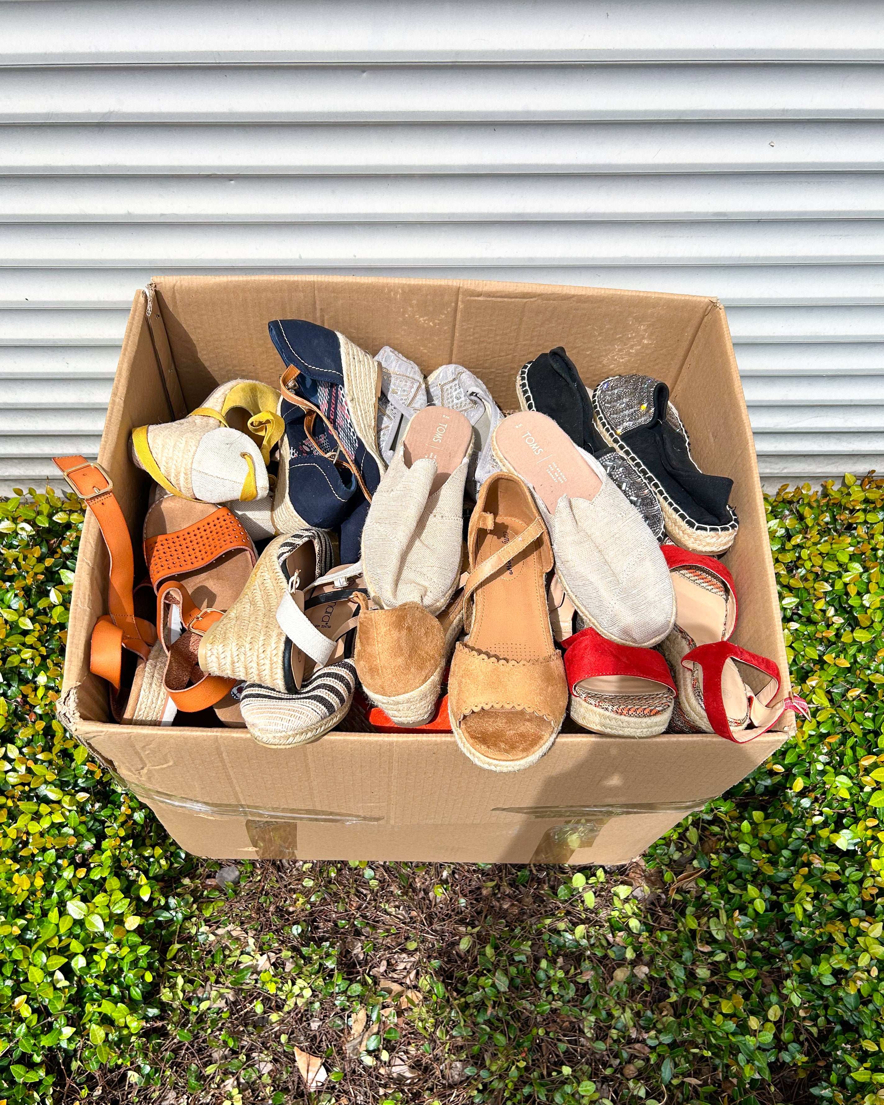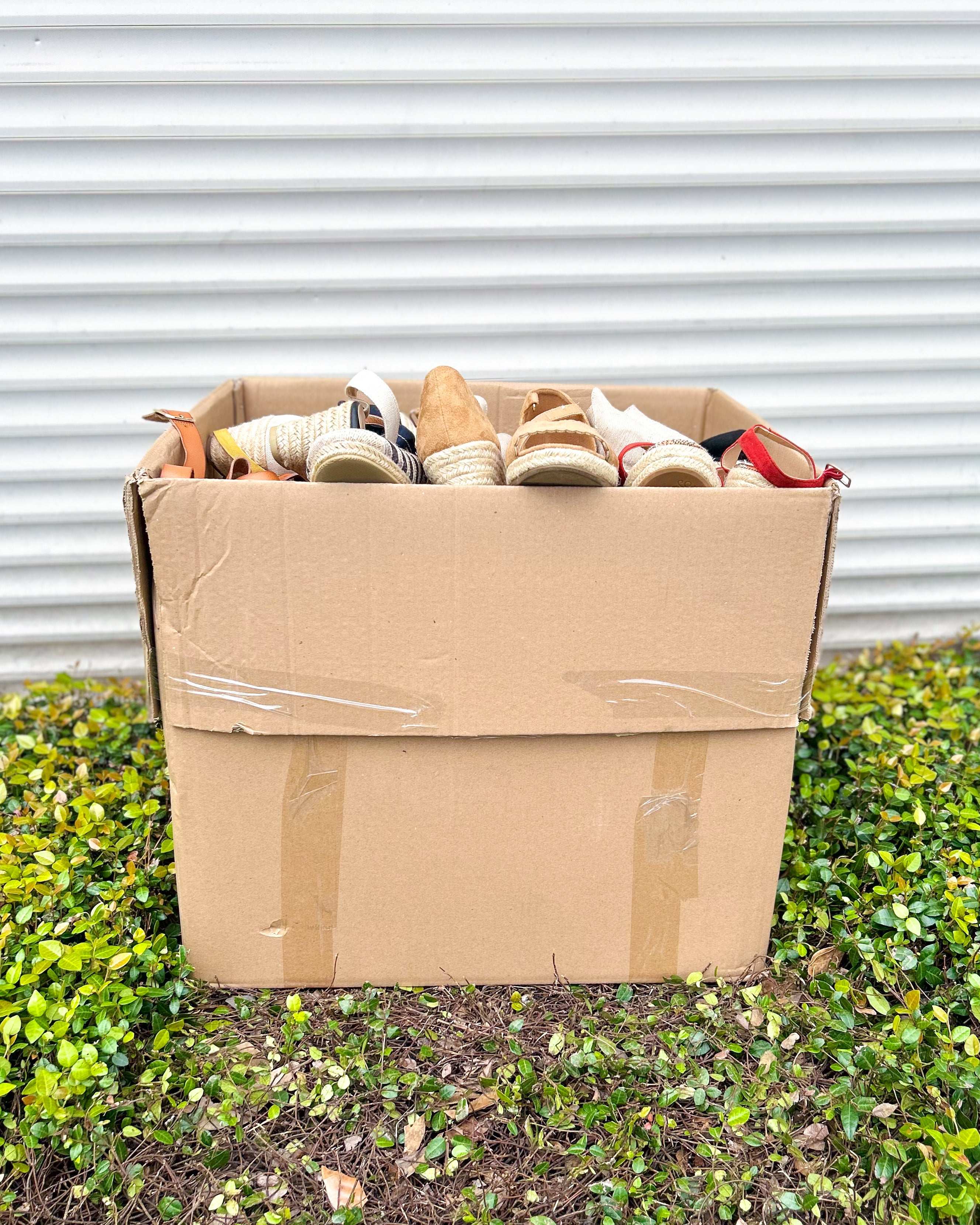 Paca de 55 lbs con sandalias y calzado trenzado para dama en tallas mixtas.Incluye variedad de estilos ideales para reventa o surtido diverso.