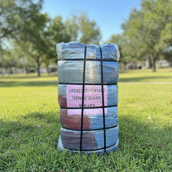 Paca intermedia con jeans y prendas de mezclilla para dama en tallas grandes, en variedad de estilos y lavados.