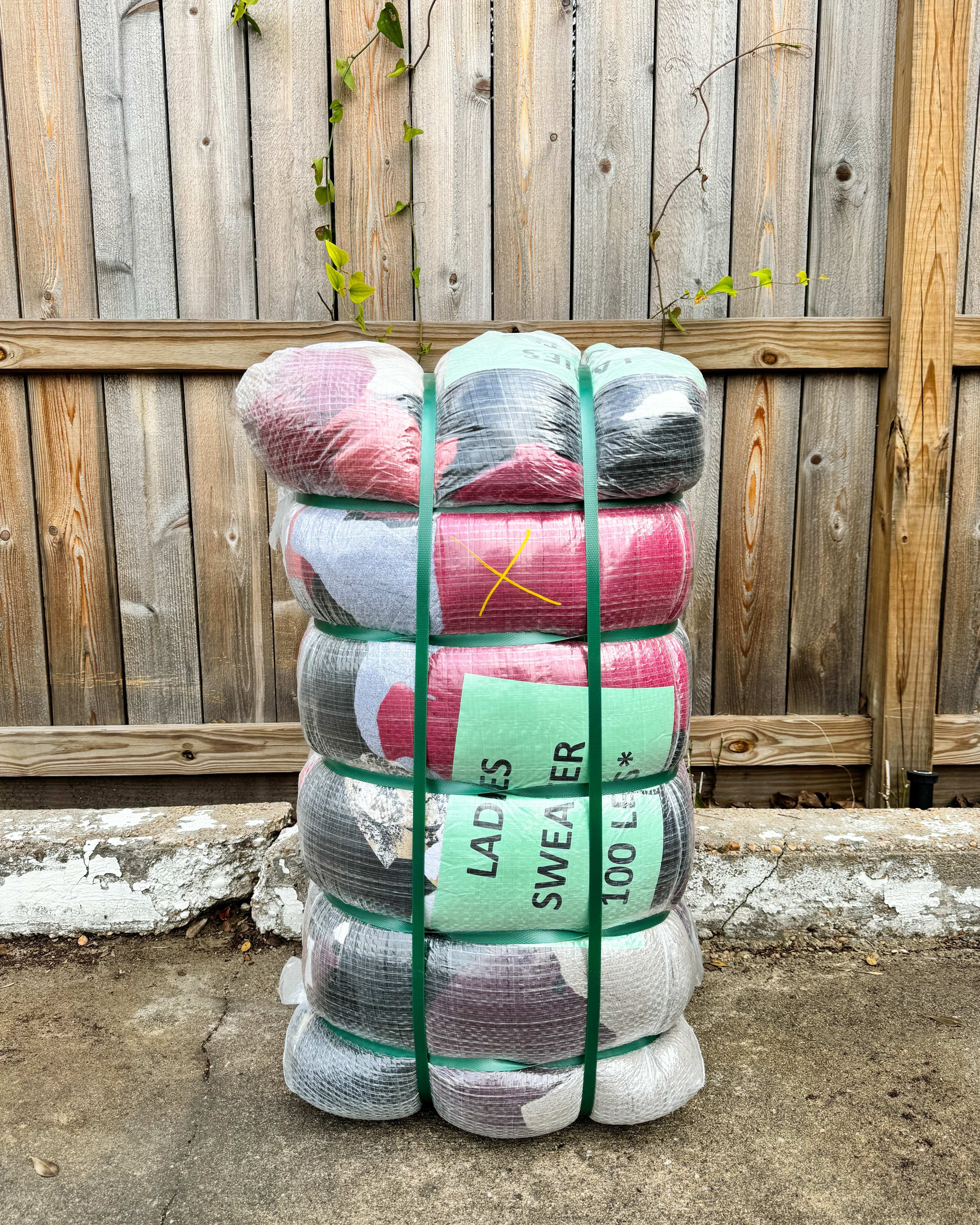 Combo de 6 pacas (aprox. 600 lbs) con sudaderas de mujer en calidades #1 y #2. Incluye variedad de estilos, colores y tallas, ideales para todas las temporadas, especialmente el clima fresco. Prendas cómodas, modernas y listas para reventa.