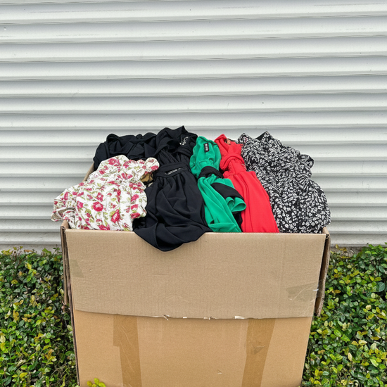Incluye un surtido variado de vestidos para mujer, ideales para uso casual y ocasiones especiales. Perfecta para reventa, boutiques y tiendas de moda femenina. Prendas listas para exhibir y vender.