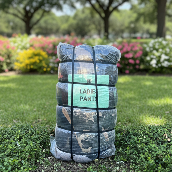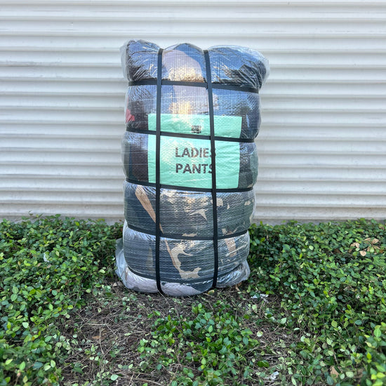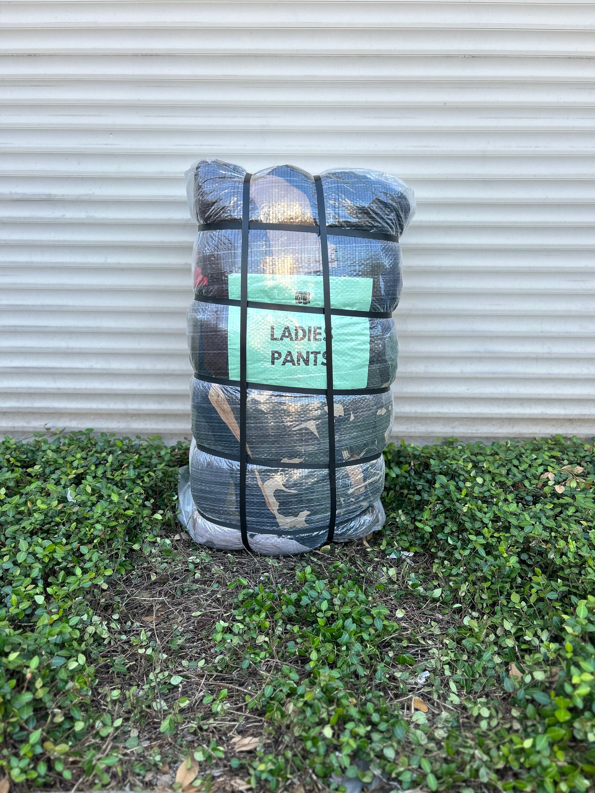 Paca de 100 lbs con pantalones de mujer en tallas y estilos variados.